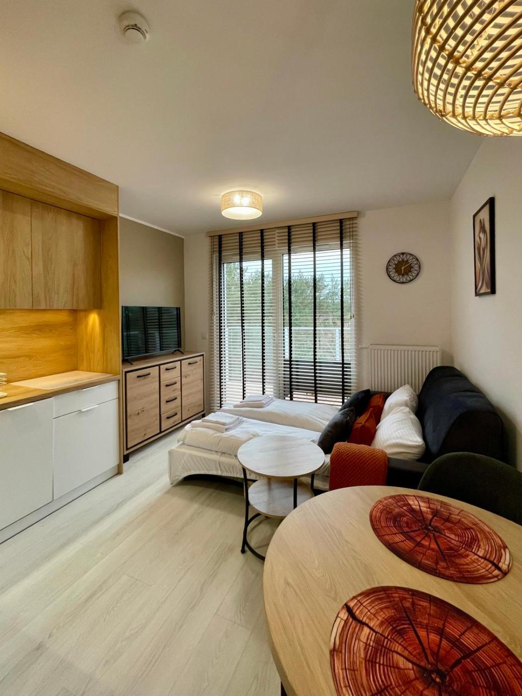 Apartament typu studio z balkonem. The private pool and hot tub are the special features of this apartment. This apartment comes with 1 living room, 1 separate bedroom and 1 bathroom with a shower and a hairdryer. Guests will find a stovetop, a refrigerator, a dishwasher and kitchenware in the well-equipped kitchen. The apartment also includes a barbecue. The apartment features a washing machine, soundproof walls, a tea and coffee maker, a flat-screen TV, as well as garden views. The unit has 1 bed. Apartament - 2 osobowy. Powierzchnia pokoju ok.: 21 mkw.